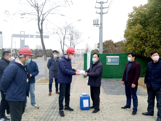 2月25日下午,園區(qū)黨工委委員、管委會副主任、規(guī)劃建設局局長邢全男帶隊慰問蘇宿園區(qū)架空線路二期入地工程一線工人。給工人送來口罩、消毒液和酒精等防疫用品。