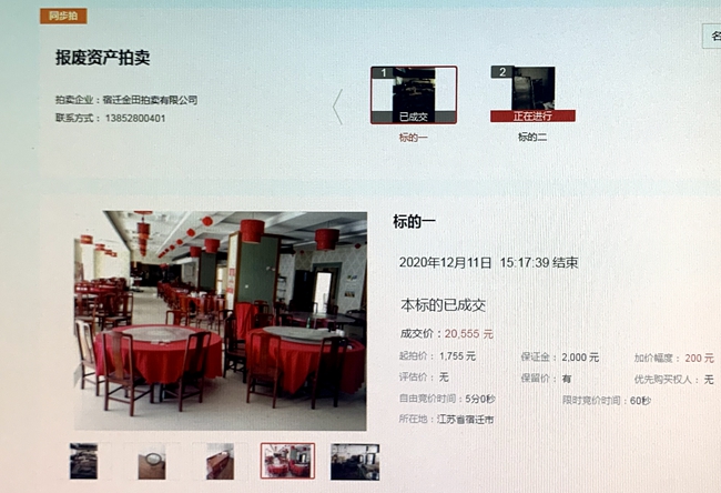 12月11日下午3時(shí),城發(fā)公司部分報(bào)廢廚具、桌椅等物資網(wǎng)上拍賣開(kāi)始,10家競(jìng)買人,經(jīng)過(guò)17分39秒90次的緊張激烈競(jìng)價(jià),最終以20555元成交標(biāo)的,比評(píng)估價(jià)超出10倍。