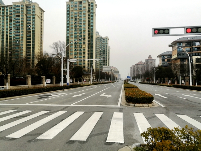 由于區(qū)內(nèi)道路交通標線時間久和原料自身損耗原因,現(xiàn)有交通標線不明顯、缺損較大。為提高商住區(qū)形象,園區(qū)對商住區(qū)內(nèi)所有道路交通標線、斑馬線和網(wǎng)格線等標線重新進行施劃,同時對通達大道重點路口進行節(jié)點改造。