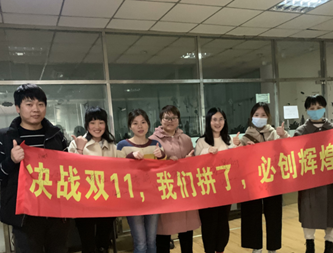 11月5日下午,我們來到騰輝家具的辦公室,首先映入眼簾的是一條亮麗的條幅:“決戰(zhàn)雙11,我們拼了,必創(chuàng)輝煌!”據(jù)了解,騰輝家具從十月份就開始備戰(zhàn)“雙十一”了,從運(yùn)營的活動報(bào)名,到工廠的積極備貨,再到客服的服務(wù)態(tài)度。除了騰輝家具,園區(qū)電商企業(yè)四通科技、左氏木業(yè)等電商企業(yè)也都紛紛進(jìn)行了動員。