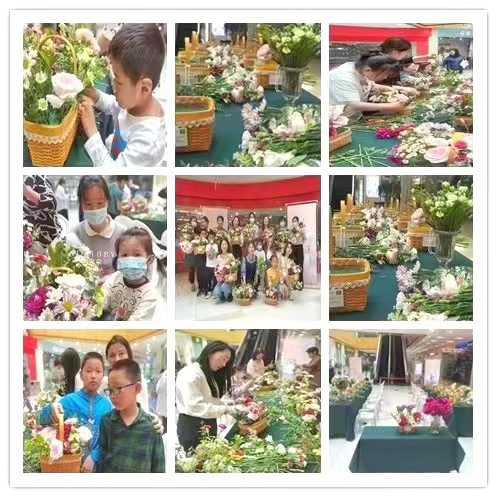 活動現(xiàn)場,花藝老師詳細講解了花藝的歷史淵源、特色、插花類型和技巧,并手把手傳授插花實操要領。在老師的指導幫助下,參與的媽媽和孩子們邊看邊學,認真創(chuàng)作,將原本普通的花草經過巧手制作成精致的插花作品?;顒拥玫搅藡寢尯秃⒆拥膹V泛參與,尤其是媽媽們手捧著自己孩子制作的色彩鮮艷、錯落有致的花束拍照留念,臉上溢滿了幸福。