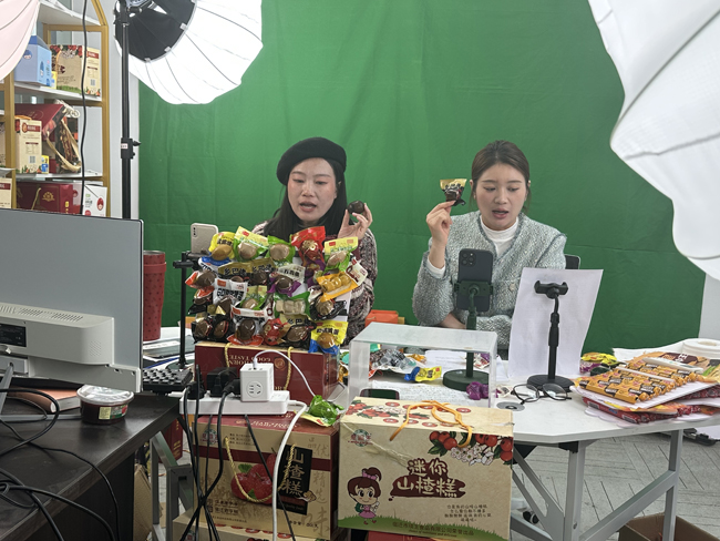 當(dāng)天,電商產(chǎn)業(yè)園內(nèi)的“直播大棚”人氣爆棚。主播們?cè)阽R頭前與消費(fèi)者展開互動(dòng),充滿激情地介紹各類商品,通過(guò)生動(dòng)的語(yǔ)言和直觀的展示,將商品的特點(diǎn)和優(yōu)勢(shì)傳達(dá)給觀眾,引導(dǎo)他們進(jìn)行購(gòu)買,主播們還以抽獎(jiǎng)、送禮等方式增加直播的趣味和互動(dòng),吸引更多觀眾的參與。