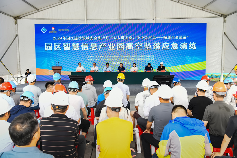 今年6月是第23個全國“安全生產(chǎn)月”,主題是“人人講安全、個個會應急——暢通生命通道”。 為貫徹落實《園區(qū)安委辦關于開展2024年園區(qū)“安全生產(chǎn)月”活動的通知》要求,6月14日,在規(guī)劃建設局組織下,城發(fā)公司會同園區(qū)智慧信息產(chǎn)業(yè)園各參建方,在項目現(xiàn)場舉行2024年園區(qū)建設領域安全生產(chǎn)月高空墜落應急演練活動。園區(qū)黨工委委員、管委會副主任、規(guī)劃建設局局長陳宏根,規(guī)劃建設局副局長劉美霞,城發(fā)公司總經(jīng)理助理張驥,園區(qū)在建項目建設單位、施工總承包、監(jiān)理等100余名人員共同參與。