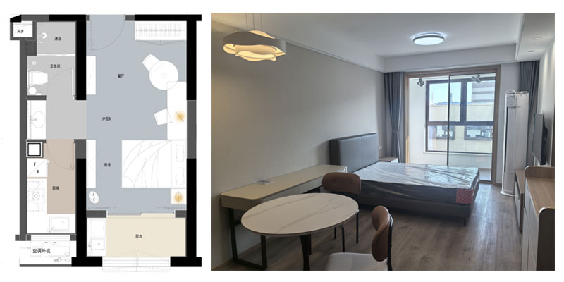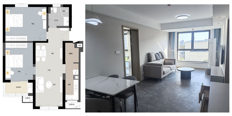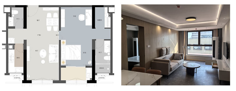 青年公寓一期3#白領公寓共三種戶型,A戶(2室1廳1廚1衛(wèi)面積84m2)44間、B戶(1室1廳1廚1衛(wèi),面積35m2)88間、C戶(1室1廳1廚2衛(wèi),面積72m2)44間,共計154間,裝修面積約1.3萬平方米。白領公寓旨在服務于入駐企業(yè)高精尖人才,是園區(qū)迄今為止已建成的單體建筑規(guī)模最大、配套設施最為完善的白領公寓,內設廚灶、抽油煙機、櫥柜、床、書桌、衣柜、空調、冰箱及電視等基本生活設施,為入住人群提供拎包即住的便利。