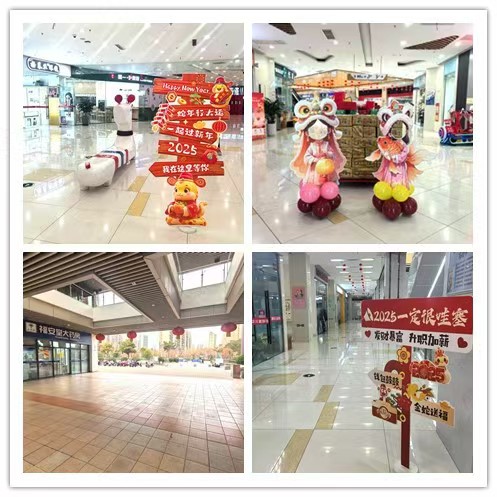 公司精心策劃,大門粘貼的精美窗花、高掛的大小燈籠、增設網紅背景墻、擺放拍照打卡立柱……鄰里中心裝飾一新,各種充滿年味的布置為即將到來的新春佳節(jié)增添了濃濃的喜慶氛圍。