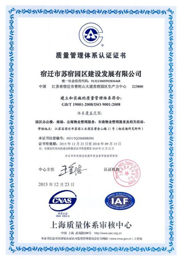 近期,園區(qū)建發(fā)公司正式獲得由上海質(zhì)量認(rèn)證中心頒發(fā)的ISO9001質(zhì)量管理體系認(rèn)證證書。